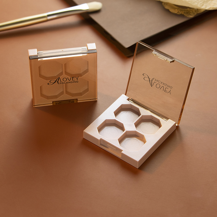 Clear cap square 4 colors empty eyeshadow palette packaging inside pan is in unique octagon shape. The empty makeup palette is made of ABS durable material, allowing you to store in an organized manner.