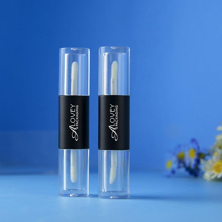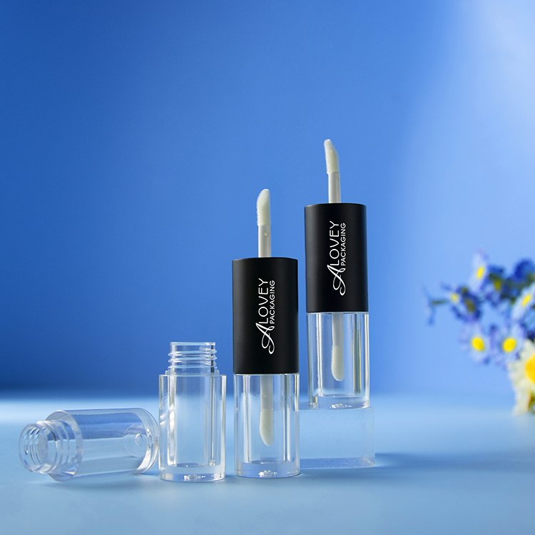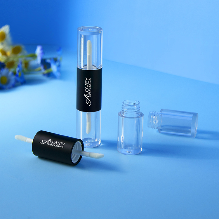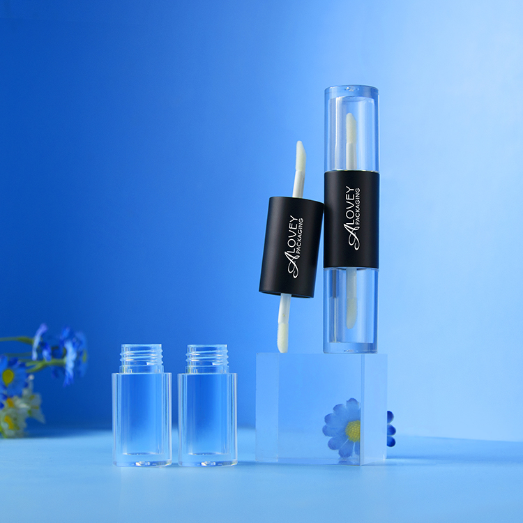 Alovey empty lip gloss tube features two separate compartments, each with its own twist-up applicator, allowing you to create custom lip glosses with two distinct finishes or colors.