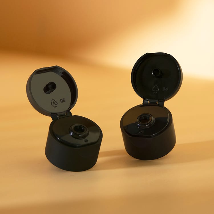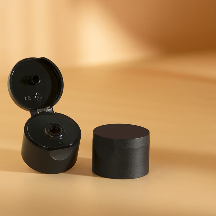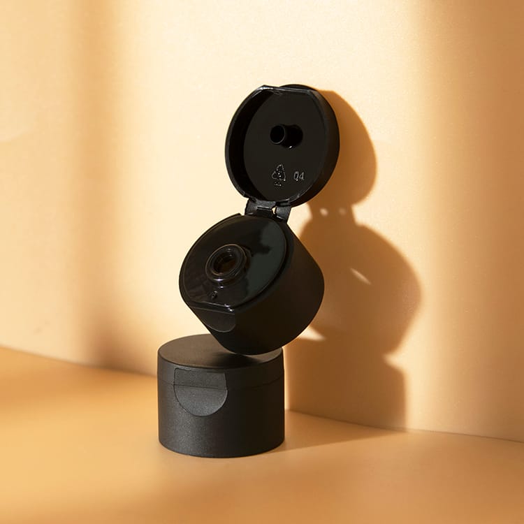 24/410 black flip top closure for hand sanitizer bottle lotion bottle in round shape design.