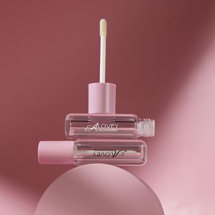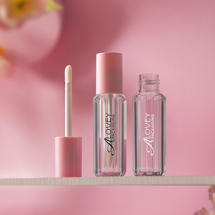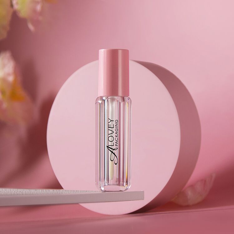 Empty lip gloss tubes with Polygon Cute 4ml and pink cap have a rubber wipper insert to prevent air leakage and maintain product quality.