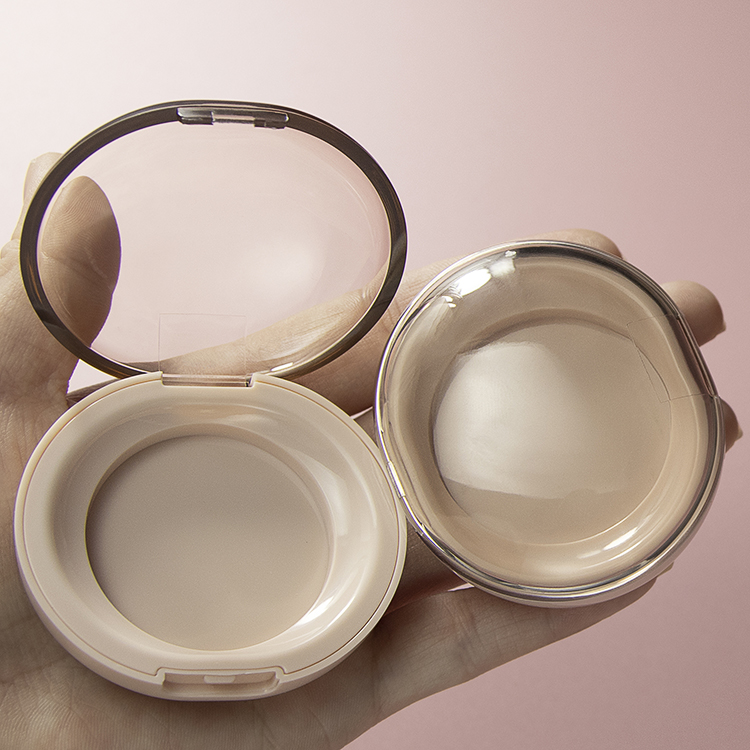 This unique cosmetic compact packaging with transparent lid is designed to combine modern aesthetics with practical functionality. The clear lid allows full visibility of the blush or powder color, helping customers quickly identify shades and enhancing shelf appeal.