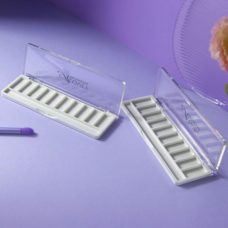 This private label empty eyeshadow palette is versatile , it is designed with 10 individual grids and a dedicated brush position, allowing you to store and organize a variety of cosmetics such as eyeshadow, blush, or other pressed powders.