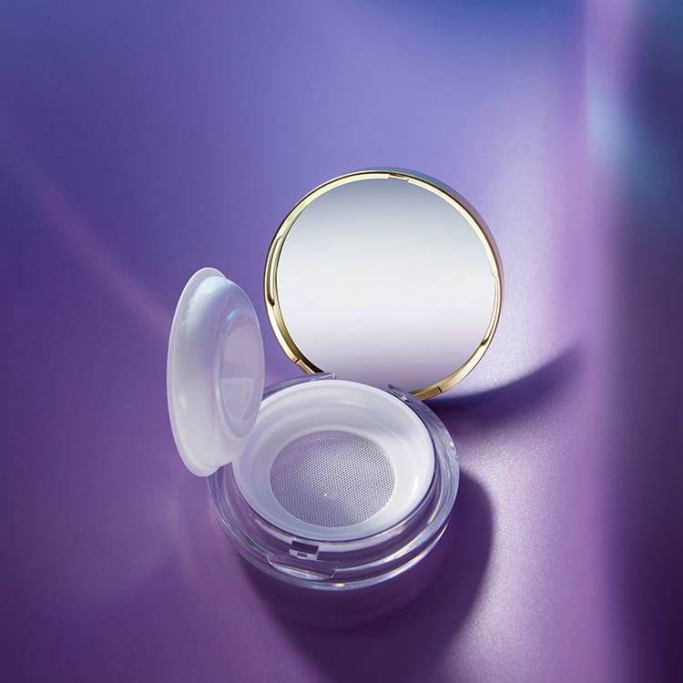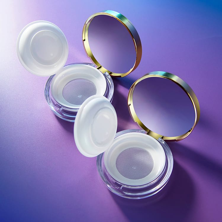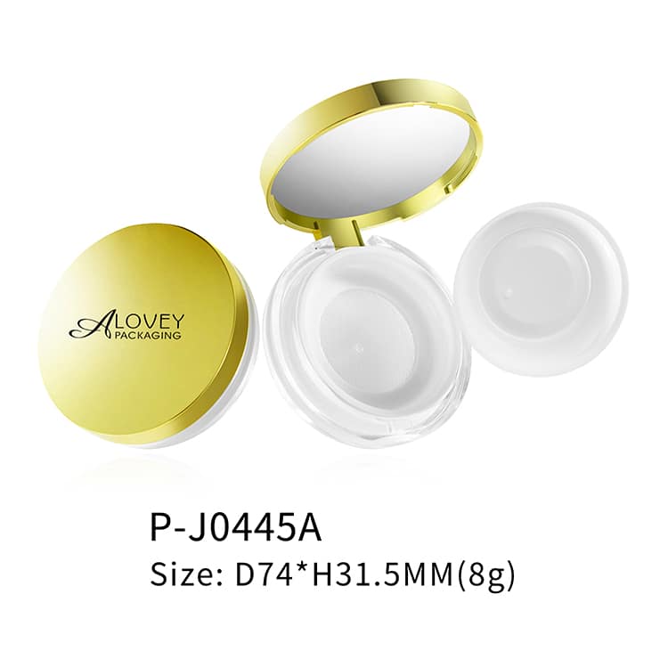 Luxury empty loose powder case with sifter and puff 8g,whose flip cap mesh can protect powder from spilling. The top layer of the mesh can be put in puff.