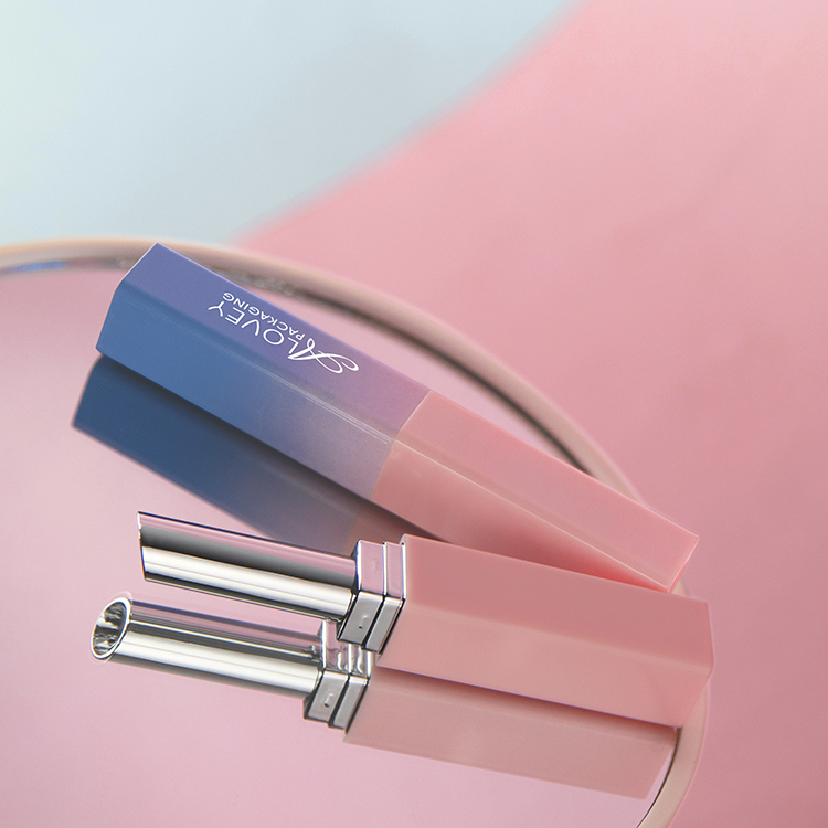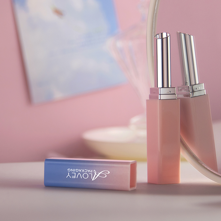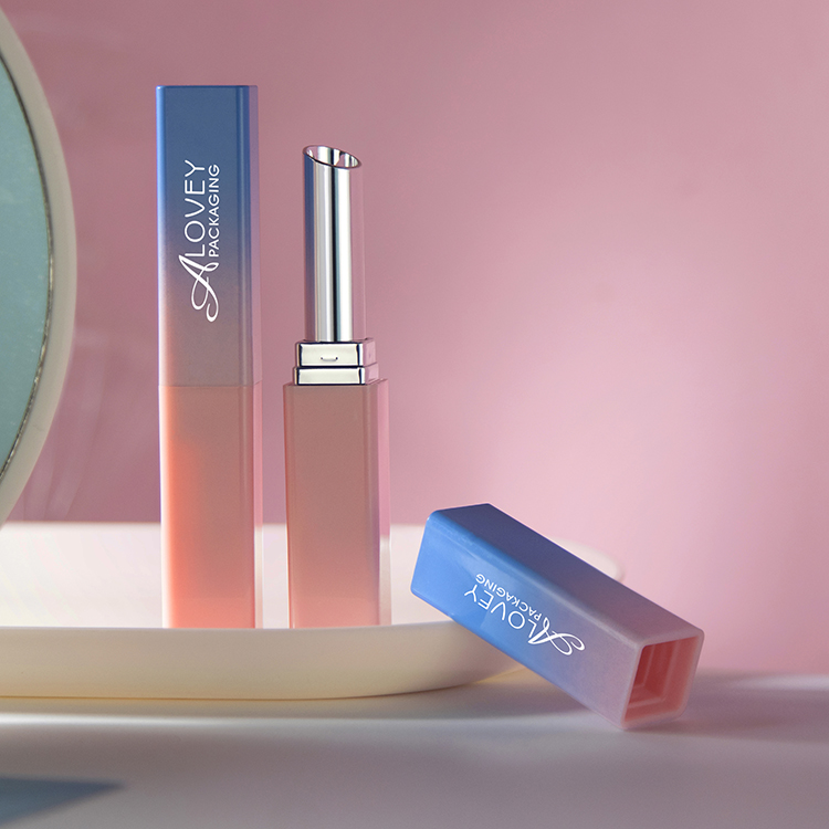 This slim lipstick tube with square shape and gradient color offers a sleek, modern look that beautifully highlights your lip shades.