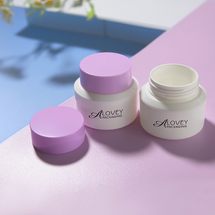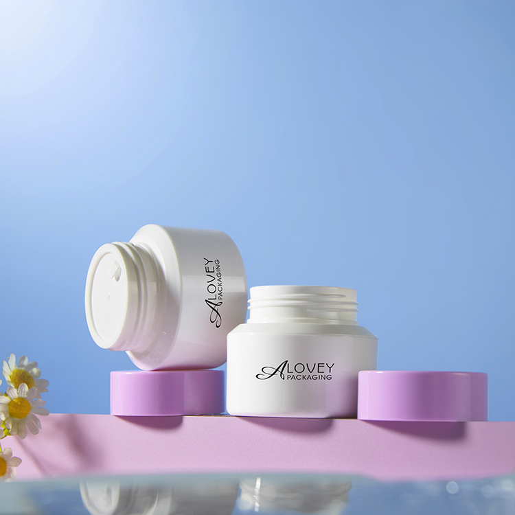 This 50g round facial cream jar features a modern flat design and lightweight construction, making it both stylish and practical for skincare packaging.